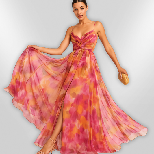 שמלת "אוראל" - שמלת מקסי בגזרת מעטפת עם הדפס פרחוני עדין וחגורת מות