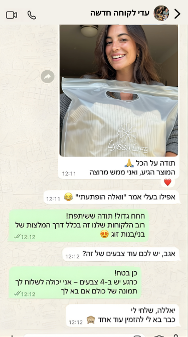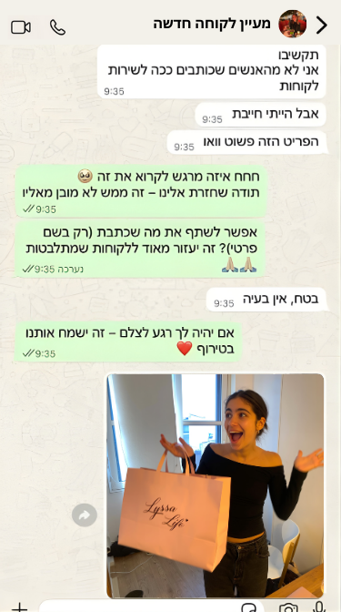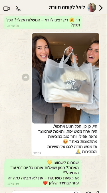 שירות הלקוחות שלנו זמין לכל שאלה או עדכון — ואנחנו כאן כדי ללוות אותך עד שהחבילה מגיעה אליך בשלום 🤍